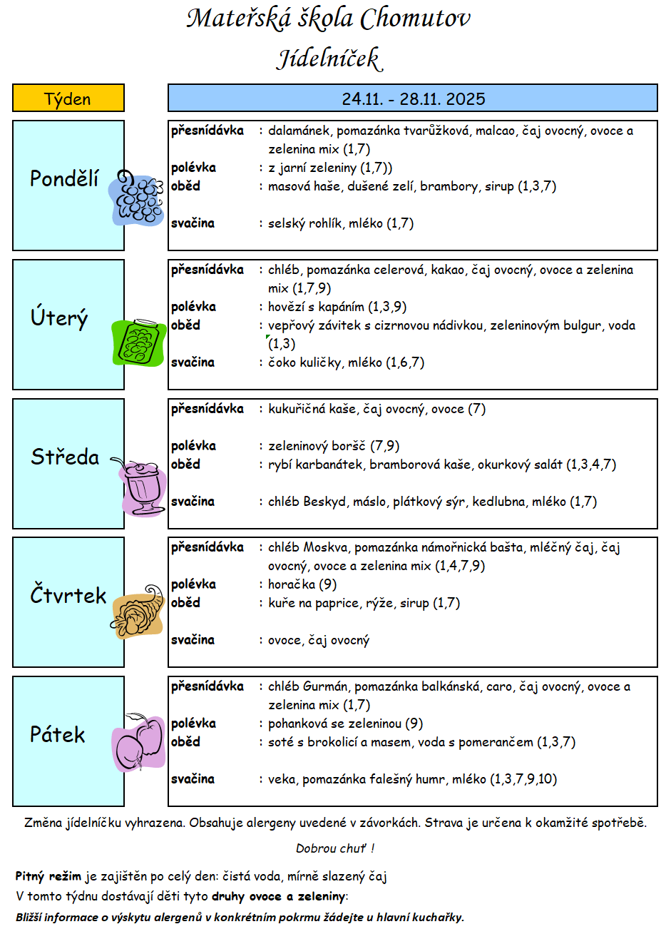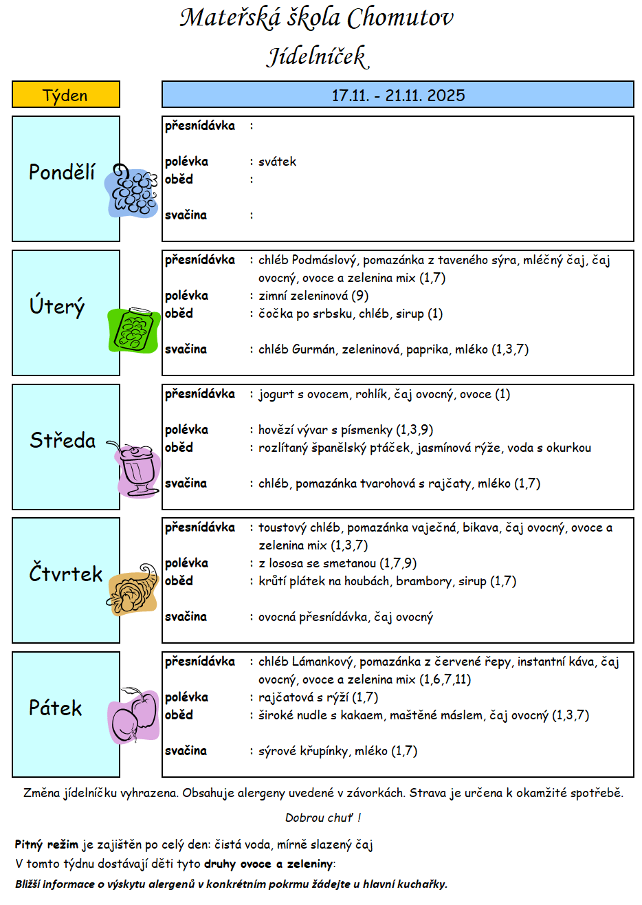 Jídelníček obsahuje alergeny označené v závorce!!!