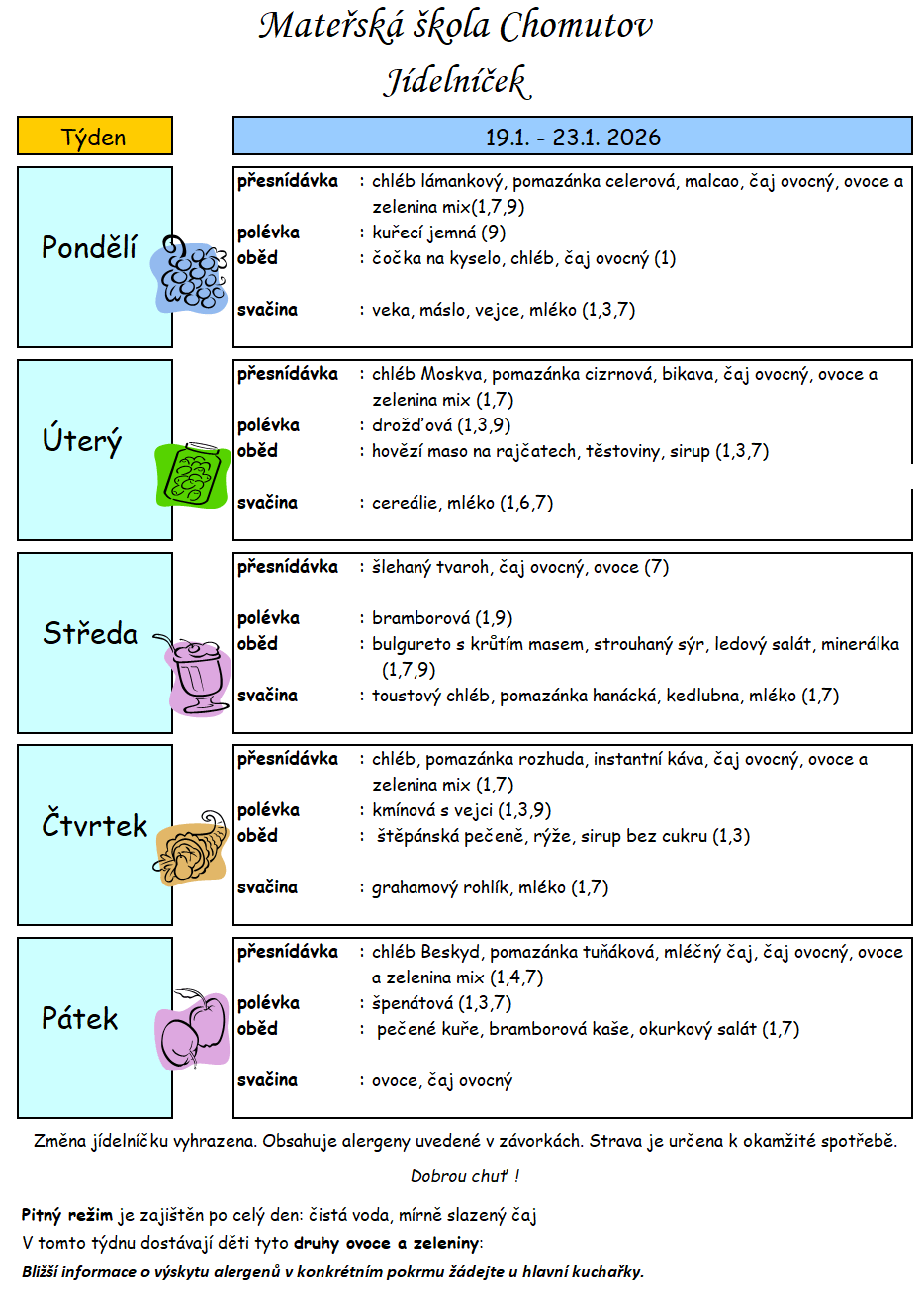 Jídelníček obsahuje alergeny označené v závorce!!!
